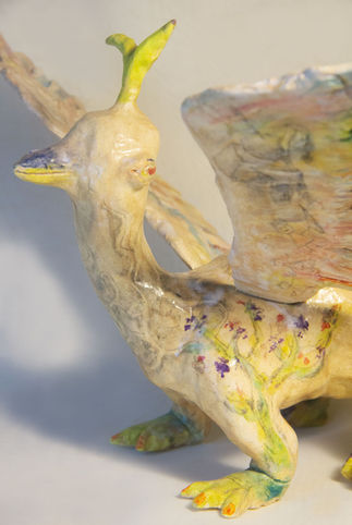In collaboration with Dancer/Choreographer Yung-Chieh Kao, Tsou was invited to bring a creature from Kao’s imagination—3D modeled by 張秉蓁—into physical form as a ceramic sculpture, giving it tangible presence in reality. Tsou adjusted the sizing to ensure the piece could stand steadily while also functioning as a piggy bank. The process involved time and many studio conversations, culminating in intricate doodles covering its surface—an homage to the collective human consciousness. This work earned Tsou the honorary title '千絲萬縷,萬念俱灰' (A Thousand Threads, A Million Lost Thoughts).